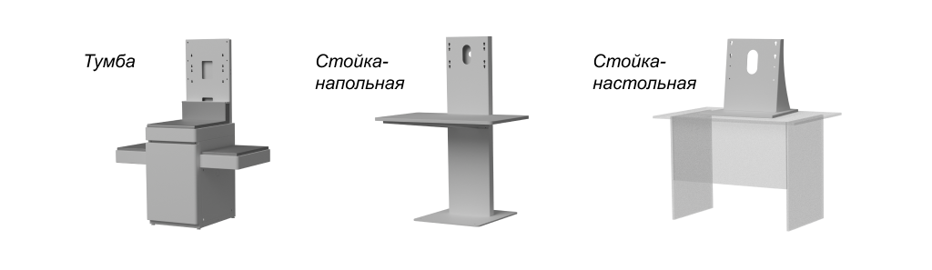 Касса подходит для компактного острова самообслуживания. Ее можно установить на напольную, настольную стойку или тумбу. Крепления позволят расположить периферийные устройства так, чтобы соблюдался баланс удобства для покупателя и экономии пространства.